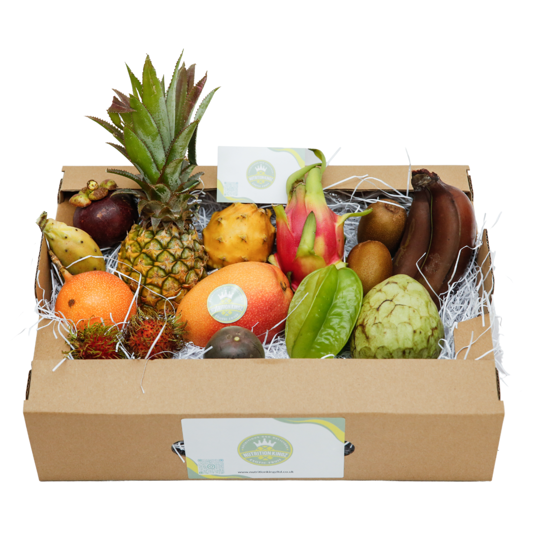 Our small selection box will contain 14 to 18 different varieties, of the finest hand picked rare exotics from around the globe. Our fresh fruit boxes contain an assortment of our rarest exotics, including Nashi pears and kumquats, Dragon fruit and lots more. Our fresh exotic fruit box is bursting with mouth-watering flavours packed full of nutritional benefits and tropical taste experiences.